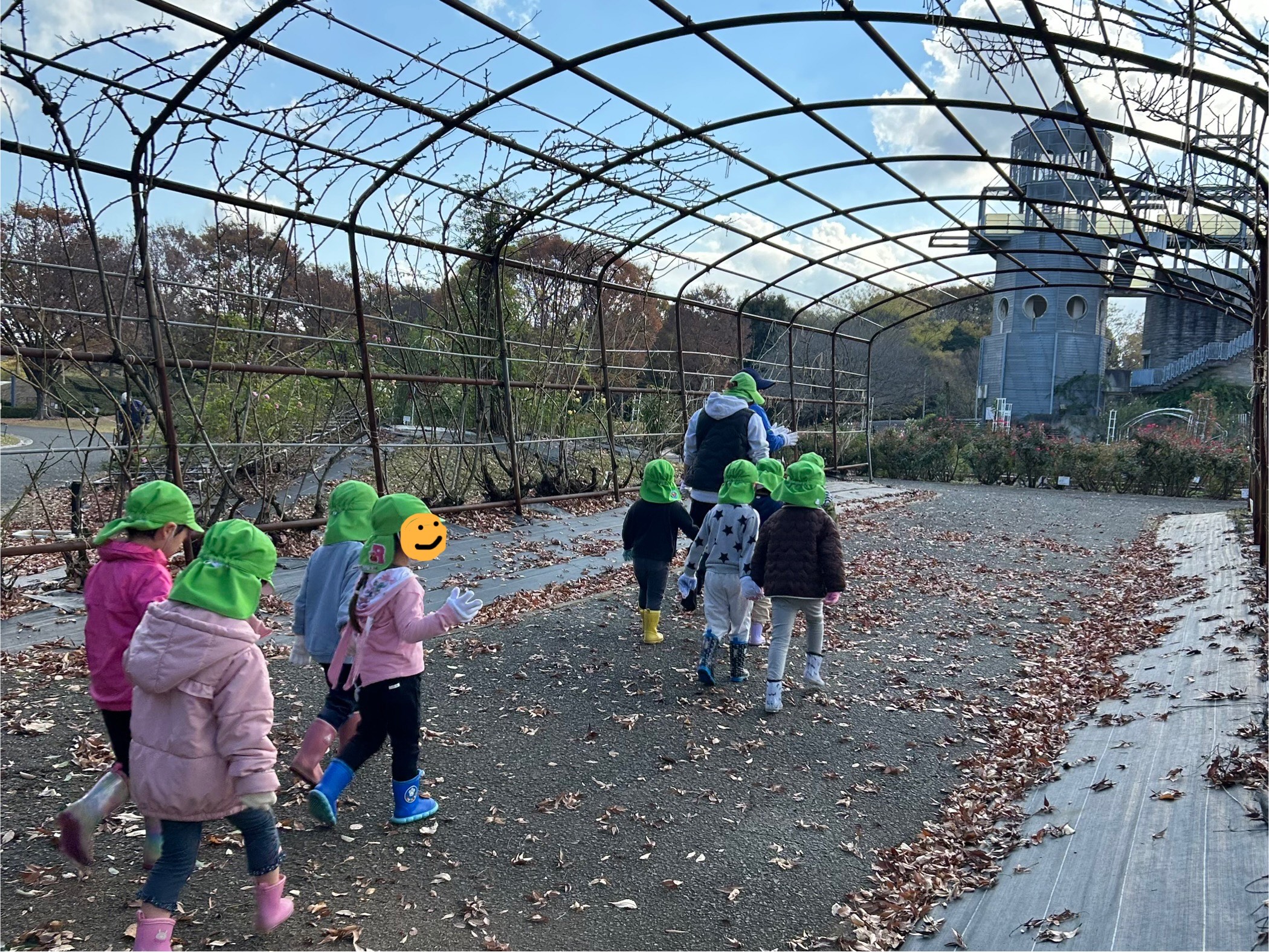 到着して、園内を散歩しながら畑に向かいます。